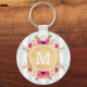 Schlüsselanhänger mit Pfefferminzschnitt, Aquarellpinke Blume und Imitate Goldfolie kundenspezifisch monogramm.