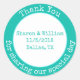 Minzgrün-weiße Aufkleber mit Gastgeschenk Hochzeit, mit benutzerdefiniertem Text, der um den äußeren Rand und in der Mitte verläuft. Personalisieren Sie alle Textfelder für Ihre Hochzeit.
