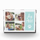 Mit diesem niedlichen, modernen Foto-Collage-Block mit 4 quadratischen Fotos Ihres Hundes, die in einem Rasterlayout angeordnet sind, lassen Sie Ihre Furry-Beete abschalten. "Hunde-Mama" erscheint rechts in weißer Schrift mit einer Plastschrift auf einem pastellfarbenen, grün geprägten Hintergrund.