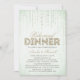 Dieses stilvolle Probe-Dinner-Einladungs-Design von The Gepunktet Olive™ zeichnet sich durch einen sanften Hintergrund aus, mit einem Bild von Streaming-Edelsteinen, das von oben herunter kommt, und dem Wort "Dinner", das mit einem Bild von Goldmedaille gefüllt ist. BITTE BEACHTEN SIE: DIESES DESIGN BIETET NUR EIN DRUCKENDES BILD VON GLITZER; ES GIBT KEINEN PHYSISCHEN GLITZER, DER VERWENDET ODER INKLUSIVE IST; ES GIBT KEINE EMBELLISHIERUNGEN. DAS IST EINE FLACHDRUCKTE EINLADUNG. Copyright 2014-Present | Der Gepunktete Olive™ | Alle Rechte vorbehalten