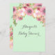 Personalisierte Baby Dusche Einladungen in hellpastellfarbenen Minzgrün und hübsch rosa Aquarell Vintage Blume. Ideal für eine Frühjahr- oder Sommerdusche.