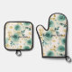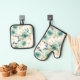 Minze Green White Gold Rose Floral Ofenhandschuh & Topflappen-Set