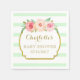 Es ist ein Mädchen-Servietten für Babydusche mit hellpastellfarbenen Minzgrün und weißen Streifen Muster, rosa Aquarellfarben Vintage Blume und Golddetails.