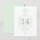 Moderne Eleganz beschreiben diese raffinierte, subtile Damask Wedding Tischnummer Postcard mit einem hellgrünen Damast-geblüht Hintergrund. Diese klassische Tischkarte eignet sich hervorragend für eine Hochzeit und lässt sich leicht mit einer Tischnummer oder Ihren Hochzeitsdetails anpassen. Klicken Sie für weitere Anpassungsoptionen auf die Schaltfläche Anpassen.