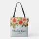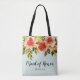 Moderne Trauzeugin-Tasche mit roten Aquarellfarben-Rose, grünem Blattwerk auf einem Minzhintergrund. Text kann angepasst werden.