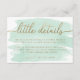 Fügen Sie diese Kleine Details Umschließkarte mit Ihren Einladungen als Hinweis hinzu, um Ihren Gästen zusätzliche Informationen für die Babydusche lassen. Diese Karte zeichnet sich durch ein zeitloses Aquarelldesign mit einer goldenen Folie aus Imitat aus. Alle Texte außer der Goldüberschrift können bearbeitet werden.