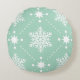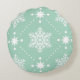 Fest Mint Grün und Weiß Schneeflocken Weihnachtsmuster auf dem runden Kissen.
