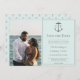 Dieses Nautical Monogram Foto Ankündigung Datum freihalten mit einem einfachen Textdesign, einem einfachen nautischen Anker für die Braut und Bräutigam Monogramm in einem modernen umrissenen Kasten, gewartet für Ihr Foto und Ihre Hochzeitsdetails, um sich anzupassen. Zusätzliche Farben sind mit diesem Design verfügbar. Ideal für Paare mit einem Hochzeitsthema an der Küste.