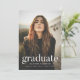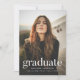 Einfache Graduiertenfeier mit dem vertikalen Foto des Absolventen mit "Graduate" in weißer, moderner Schrift. Personalisieren Sie die Foto Graduation Party einladen, indem Sie den Namen, den Schulnamen und den Abschluss Jahr. Die Einladung kehrt zurück, um Ihre Abschlussfeierdetails mit einem minzgrünen Hintergrund anzuzeigen.