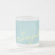 Die überragenden vertikalen Pfefferminzgrün und die blauen Nadelstreifen verleihen dieser Tasse ein modernes und spielerisches Aussehen. Ihr Name kann vollständig in einem fröhlichen gelben Skript angepasst werden, sodass jede Tasse einzigartig ist. Die weiche, sanfte Farbkombination funktioniert perfekt für jeden Anlass, vom täglichen Kaffee über das Studium bis hin zu Geburtstagen und besonderen Geschenken. Ein stilvolles und personalisiertes Design, das jeden Morgen einen farbenfrohen Pop ❤️