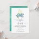 Mint und blau boho florale Paare Duschen Wein Degustation lädt mit Pfauenfedern entworfen, um schnell und einfach angepasst werden.