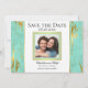 Eine zeitgenössische Hochzeitskarte "Save the Date" mit Minze und Imitaten goldenen Marmorfolien-Hintergrund, um Ihre Hochzeitspläne stilvoll anzukündigen. Laden Sie das ausgewählte Foto anstelle des Beispiels-Fotos, das in der Entwurfsvorlage angezeigt wird, hoch. Bearbeiten Sie den Beispieltext mit Ihren Angaben.