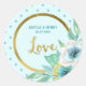 Stilvolle Rundaufkleber für die Hochzeit mit Imitaten, goldenen Rahmen, Minze und aquamarinen Polka-Punkten, wunderschöner Aquarellblüte und dem Wort "Liebe" im Drehbuch. Verwenden Sie es, um Ihre Umschläge oder für die Dekoration Siegel. Karo andere passende Hochzeit/Bridal Artikel in meinem Shop hier -> http://www.zazzle.com/collections/mint_stripes_faux_gold_floral_wedding_bridal-119233279177896925?rf=238364477188679314 Personalisiere sie mit deinen Daten, indem du den Platzhalter-Text ersetzst. Für weitere Optionen klicken Sie auf die Schaltfläche "Anpassen". *Bitte beachten Sie, dass das Zazzle-Wasserzeichen, das in der Zoomvorschau angezeigt wird, NICHT auf dem gedruckten Endprodukt erscheint. © Rosewood and Citrus