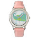 Kinderuhr aus Edelstahl mit rosa Lederarmband