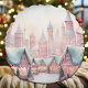 Eine minze und rosa Aquarellbahn Winterszene mit Weihnachtsmarkt, Schlössern und Schnee!