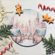 Eine minze und rosa Aquarellbahn Winterszene mit Weihnachtsmarkt, Schlössern und Schnee!
