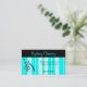 Stilvolle Minze und schwarze Geschäftskarte, mit hellem tadellosem Blau auf tadellosen Streifen und einem hübschen schwarzen Fleur Akzent. Fertigen Sie die Textfelder zum Anzug Ihr Bedarf, Änderungsfarbe, Schriftart besonders an, sortieren Sie auch und addieren Sie sogar Felder des zusätzlichen Textes, in denen Sie sie benötigen.