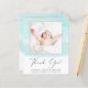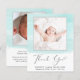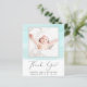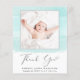 Kostengünstige Kindergeburtskarte oder Kindermädchen und Dankeschön-Karte mit weichen, grünen Aquarellpinselstrichen, dem Foto Ihres Neugeborenen und "Danke" in einem eleganten zeitgenössischen Drehbuch mit Herzschlag. Personalisieren Sie mit seinem Namen, Ankunftsdatum und Geburtsdaten in einfacher moderner Typografie. Auf der Rückseite fügen Sie ein zusätzliches Foto und ein individuelles Dankeschön und Ankündigung Nachricht.