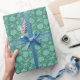 Minzgrüne BlumenDamasken über grünem Hintergrund Geschenkpapier