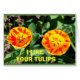 Ein Foto in der Nähe von zwei gelben und roten Tulpen ist das Thema meines "Ich mag deine Tulpen neben mir!" Grußkarte.