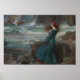 Es ist ein Bild aus Shakespeares Tempest. Es wurde von dem Künstler Waterhouse gemalt. Hier ist sie mit rötlichen Haaren und einem blau-grünen Kleid vor dem Meer.