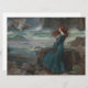 Dieses Design zeigt ein Gemälde des englischen Pre-Raphaelite Künstlers John William Waterhouse (1849-1917). Es zeigt Miranda, eine Figur aus William Shakespeares Tempest. Sie trägt ein elegantes blaues Kleid und hat langes rotes Haar. Miranda ist an einem felsigen Strand stehend und blickt auf das Meer. Die Wellen kommen herein, und das Wasser ist mit einem Schiffswrack übersät. Das Originalwerk wurde 1916 gemalt.