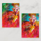 Farbenfrohe, skurrile, lebendige Venezianische Maskenfigur. Eine ausgeklügelte Blondine sitzt mit einer rote Rose und einer Federmaske in der Hand und strahlt goldene Fuchsienstoffe aus einem barocken maskierten Ballkostüm mit Federn und einem Hund. Aquarellmalerei mit hellen Farben in Gelb, Blau, Rosa, Grün, Glitzern und Silberfolie inspiriert von Figuren der Kunstkomödie ( Commedia dell' Arte ) , Karneval von Venedig und Venezianische Feather-Masken.Diese coole und künstlerische Karte ist perfekt für Friseur,stilvolle Friseur,Theater-Make-up-Künstler,Costumers,Bekleidungsdesigner,Boutiquen,Besitzer,,Stiler,Stiler,Stiler,Stillee,Stillee,Stillee,Stilleder Theaterschauspielerinnen, Models, Kosmetikerinnen, Kosmetologen, Parfums, Privatshopper, Kleiderberater, Modedesigner, Modedesigner, Fashion, Entertainment und andere kreative Berufe.