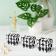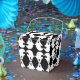 Ein lustiges Design für Groß und Klein. Dieses "Take Out Style" Vorgeschmack-Kästchen zeigt ein Schwarz-Weiß-Bild eines Geistes in einem sich wiederholenden Muster. Der schwarze Hintergrund kann angepasst werden.