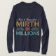 Dieses T - Shirt-Design ist eine Feier des Lachen! "Mirth in Millions" wird in einem spielerischen, vielfarbigen Schema angezeigt. Stellen Sie sich "Mirth" vor, in skurrilen Farben, die Freude hervorrufen, wie z.B. Gelb oder weiß aus einem Löwenzahn. "Millionen" könnten mutigere, feierliche Farbtöne wie feurige Orange oder leuchtend lila annehmen. Diese Kombination schafft ein Design, das sowohl leicht als auch ansteckend ist, perfekt für jeden, der will, Lachen zu verbreiten und seine Liebe von Spaß zu teilen.