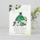 Emerald Green Quinceanera Einladung mit grünen und goldenen Prinzessinnen Gown und Aquarell florale Arrangements aus weißen Blume und Grün. Mis Quince wird in Goldfolie Wirble Kalligraphie und der Rest in eleganter Serifentypografie geschrieben. Bitte schauen Sie in meiner Emerald Greenery & White Peony Kollektion nach, um passende Artikel zu finden, oder schreiben Sie mir, um die Vorlagen zu erstellen, die Sie benötigen.
