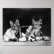 Dieses Vintage Foto verfügt über zwei Kätzchen, die den Inhalt eines umgekippten Nähkorbs erforschen. Das Bild wurde von Harry Whittier Frees gedreht, einem amerikanischen Fotografen, der sich auf die Produktion von Tierfotos für neuartige Postkarten und Kinderbücher spezialisiert hat. Das meiste Thema seiner Fotografien sind Tiere, die menschliche Situationen nachahmen.