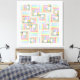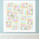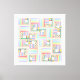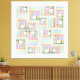 Das geometrische Muster besteht aus mehrfarbigen Streifen und Schachbrettplanken und Set auf einem soliden braunen Hintergrund. Das Design zeichnet sich durch eine repetitive, ineinander greifende Anordnung von Quadraten und Rechtecken aus.