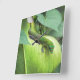 Ein Gecko, der versucht, sich einzumischen und sich auf dem grünen Blatt zu verstecken.