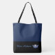 Diese niedliche, große Tasche ist in Navy und schwarz unterer Farbe Block Stil mit einer blauen Seitenkrone und eigenem Text gezeigt. Passen Sie dieses Element an und ändern Sie den Text in Ihren Text.