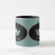 Diese zweifarbige Tasse hat einen schwarzen Stift und ein schwarzes Interieur. Im Hintergrund des Dusty Aqua über der weißen Tasse befinden sich auf beiden Seiten die Ovale, in der Mitte der von Grau umgrenzten Ovale steht eine Aqua-Grünkrone. Personalisierter Text unter jeder Krone, damit Sie ihn anpassen können. Text Beispiel gezeigt in "Miss Montana". Passen Sie dieses Objekt an oder kaufen Sie es wie gezeigt.