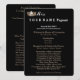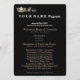 Diese klassische Luncheon-Programmkarte, die auf einer 50 kg schweren Visitenkarte für optimalen Foto-Druck erstellt wurde, ist für Sie gewartet, mit Ihren eigenen Informationen zu personalisieren. Die abgerundeten Ecken sorgen für ein elegantes Aussehen und das Schwarze für eine stilvolle Affäre. Text wird in Weiß und Taupe gemacht und hat einen Golden Crown Print in der oberen links Ecke. Eine schöne Touch für Ihren prämierten Brunch. Dieses Element muss angepasst werden. Wählen Sie Textstile, Farben usw. aus.