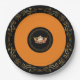 Diese festlichen Teller sind ideal, um Spaß zu haben (und sich auch leicht aufzuräumen), um sich auf der nächsten Seite zu treffen. Fügen Sie auf Wunsch Ihr Seitendesign oder Ihren Seitennamen hinzu. Hier sehen Sie einen orangen inneren Rand und einen glänzenden orangen Kronenprint in der Mitte über schicken schwarzen Hintergrund. Doppelgoldfarbene Randfalten an der schwarzen Außengrenze und an der Innenseite rund um die glänzende Krone. Personalisieren oder kaufen Sie wie geplant. Sehen Sie auch die koordinierenden Teller!