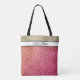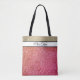 Diese Tasche wird mit einem lustigen Imitate mehrfarbigen Rosa bis Koral Glitzer Druck gezeigt. Hat eine Imitate Gold Glitzer Band an der Spitze mit Ihrem personalisierten Titel, Namen oder Lieblingssendung. Mittlere Größe angezeigt. Hat schwarze Gurte. Passen Sie dieses Objekt an oder kaufen Sie es wie geplant.