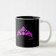 Auf jeder Seite dieser Kaffee/Kakao-Tasse liegt ein Fuchsia-Lila Tiara-Kronendruck. In Schwarz-Weiß-Tasse mit Schwarz-Interieur gezeigt. Wählen Sie Ihre Innenfarben aus und individualisieren, personalisieren oder kaufen Sie wie gezeigt.