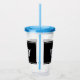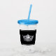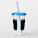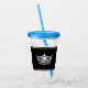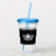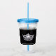 Dieser Acryltumbler mit seinem eigenen Deckel und Stroh hat einen schwarzen über einem klaren Hintergrund. Ein silbernes Kronenbild aus Single mit weißen Akzent Streifen ist sowohl vorne als auch hinten. Leder und Stroh in blau dargestellt. Wählen Sie Ihren Farbdeckel / Strohhalm Set.
