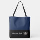 Diese niedliche, große Tasche ist in Navy und schwarz unterer Farbe Block Stil mit einer Seitenkrone und eigenem Text gezeigt. Passen Sie dieses Element an und ändern Sie den Text in Ihren Text.