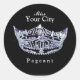 In der Mitte dieses runden Aufklebers, der in Schwarz mit einem Foto einer Königenkrone dargestellt ist, sitzt eine Miss America-Krone. Laden Sie Ihr eigenes Bild hoch, wenn Sie von Ihren Titelhaltern, Runner-Ups wünschen. Gutes Werbemittel oder Alternative zu Buttons, um einfach auf Ihrem Shirt oder der Jacke zu klopfen. Passen Sie den Text an Ihren eigenen Namen an, ändern Sie Textfarben oder passen Sie ihn weiter an. Gutes Preis-Leistungs-Verhältnis. Große Größe. Passen Sie dieses Objekt an oder kaufen Sie, wie es ist.