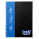 Schwarzes Notebook mit blauem Akzent und glänzendem Druck einer paeseitigen Königenkrone. Passen Sie dieses Element an, und ändern Sie den Text auf das, was Sie benötigen.
