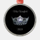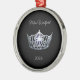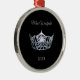 Weihnachtsschmuck in runder Form mit einer silbernen Krone in Mitte mit einem dunkelblauen Highlight, mit extravagantem Schriftzeichen im Hintergrund Silver-Gray und Black. Ausgestellt mit rotem Band und silber gerippt. Passen Sie diesen Artikel mit Ihrem persönlichen Namen, Datum oder anderem an. Ändern Sie den Beispielnamen "Miss Westfield".