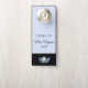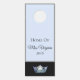 Dieser Türhänger ist zweiseitig und mit einer blauen Krone unten gekrönt. Obere Kanten, umgeben von einem silbergrauen Rahmen mit Beispieltext "Zuhause von Miss Virginia 2018". Vorder- und Rückseite sind blau und schwarz. Passen Sie dieses Objekt Ihren Wünschen an, mit welcher Farbe oder Phrase Sie möchten, oder kaufen Sie es wie geplant.