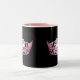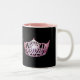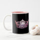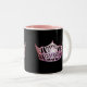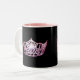 Ein glänzender rosa Kronenprint liegt vorne und Mitte auf jeder Seite dieser Kaffee/Kakao-Tasse. In Schwarz-Weiß-Tasse mit rosafarbenem Interieur dargestellt. Individualisieren und personalisieren oder kaufen Sie wie geplant.