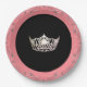 Diese festlichen Teller sind ideal, um Spaß zu haben (und sich auch leicht aufzuräumen), um sich auf der nächsten Seite zu treffen. Fügen Sie auf Wunsch Ihr Seitendesign oder Ihren Seitennamen hinzu. Hier sehen Sie einen hellen Korallenrosa-Rand und einen glänzenden Silber-Kronendruck in der Mitte über schicken schwarzen Hintergrund. Silber-Grau gefärbte Frills am Rand. Personalisieren oder kaufen Sie wie geplant. Sehen Sie auch die passenden 7" Teller!