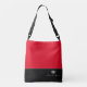 Diese niedliche, mittelgroße Crosskörper-Tasche wird in einem Scarlet Red und Black Farbblock mit einer Seitenkrone und handgeschriebenem, individuellem Text gezeigt. Dünner Akzent Streifen. Passen Sie dieses Element an und ändern Sie den Text in Ihren Text.