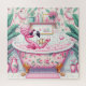 Miss Flamingo hat ein Bubble Bath Puzzle. © Jigsaw Wonderland at Zazzle. Dieses Rätsel ist ein Bild eines sonderbaren rosa Flamingo, das eine Schaumwanne in einem rosa und grünen Retro-Badezimmer nimmt.