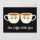 "Miss Coffee With You" in Schwarz mit 2 niedlichen Kaffeetassen in Weiß. Lass den Freunden und der Familie, die du mit einer lustigen Karte Kaffee verpasst hast. Schicken Sie einen an jeden, um seinen Tag zu verbringen. Vor allem in diesen beispiellosen Zeiten. Woll, eine andere Nachricht zu senden? Klicken Sie auf Personalisieren und nehmen Sie Ihre Änderungen vor.